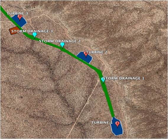 - Drenajes pluviales: Se realiza excavación y preparación de zapatas entre plataforma de aerogenerador 1 y 3.